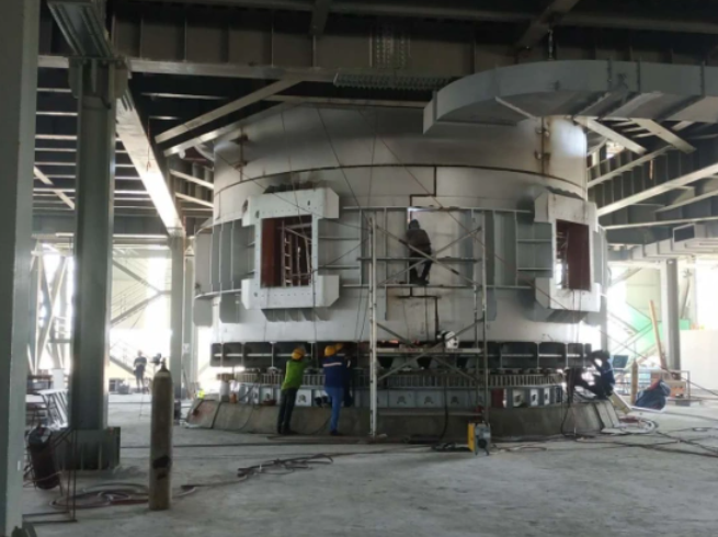 *   Furnace Shell: Constructed from a bottom plate, side plates, reinforcing hoops, and rib plates. It typically features a circular design with thick steel side plates supported by a channel steel framework anchored in concrete.